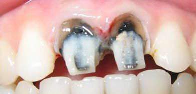 1、真牙齲壞。因?yàn)椴幻芎?烤瓷牙和真牙之間藏納的細(xì)菌會(huì)逐漸腐蝕真牙,造成真牙齲壞,時(shí)間久了真牙甚至?xí)耆珷€光,烤瓷牙成為無(wú)本之木。