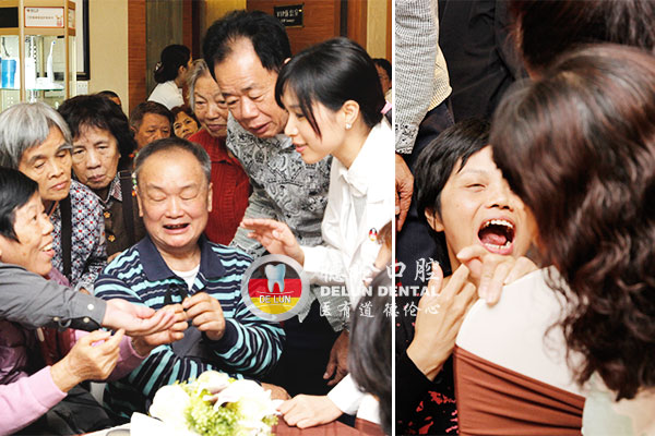 種植牙的康女士心情非常之好,主動張嘴給前來的市民進行觀看種牙后的效果