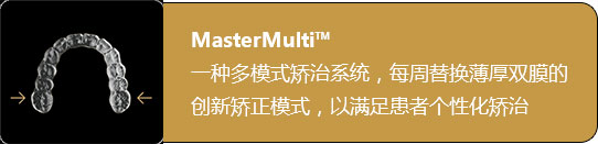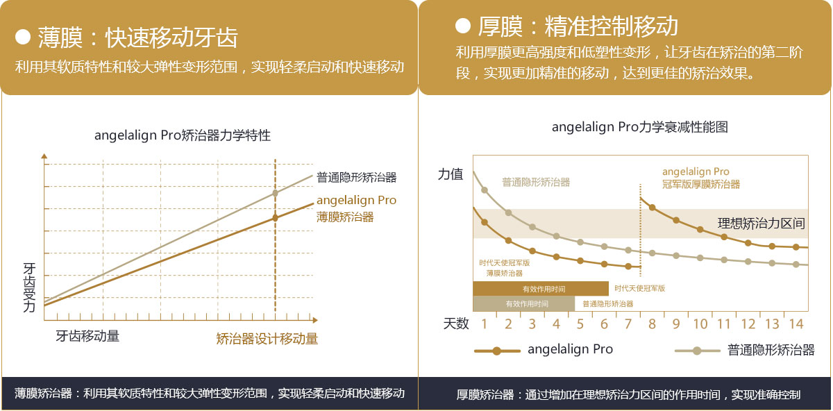矯治采用兩種不同的厚度的膜片(牙套),發揮兩種不同膜片的各自優勢,在有效的作用時間內,矯治效率、矯治目標達成和舒適度方面較普通隱形矯正方式有明顯提升。